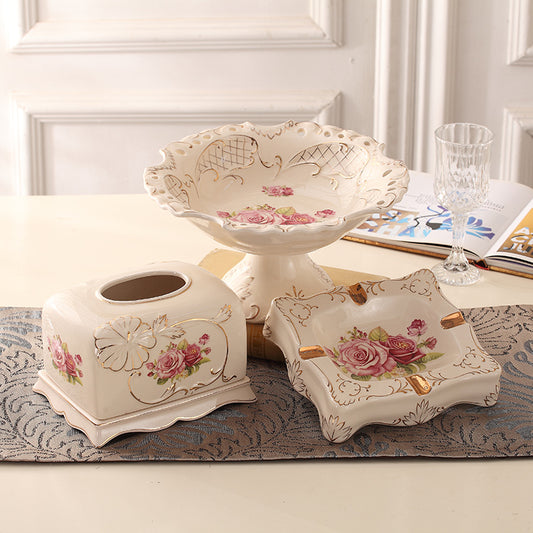 European-Style Fruit Plate Three-Piece Ceramic Tea Table Decoration Living Room Fruit Plate