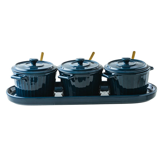 Simple Ceramic Seasoning Jar Household Double Ear Ceramic Bowl