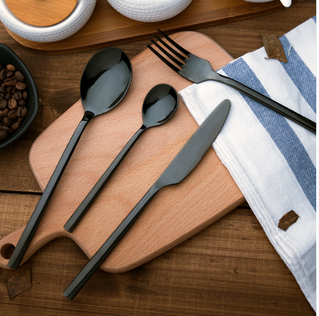 Matte Black Stainless Steel Luxury Cutlery Tableware Knife Coffee Ice Spoon Fork Chopsticks Flatware Set