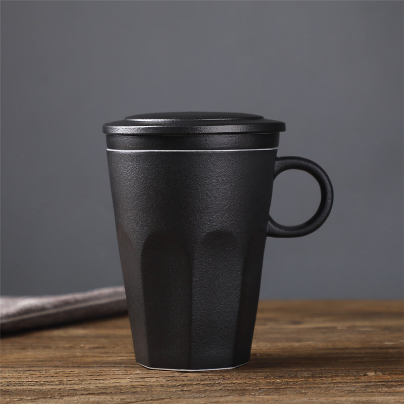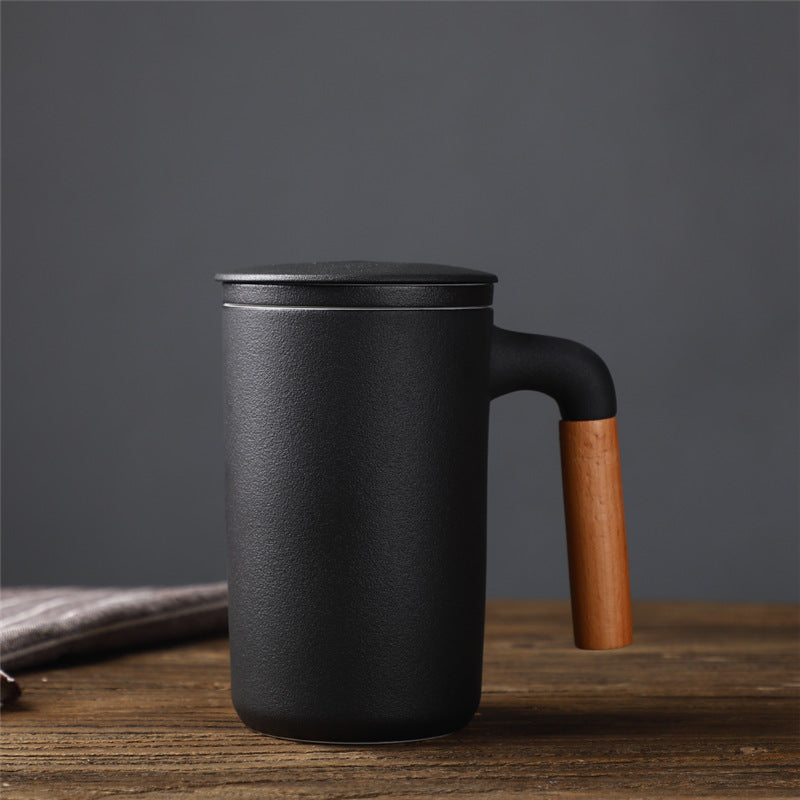 Ceramic Large Capacity Mug Custom Japanese Stoneware Office Cup Wooden Handle Gift Cup With Lid Tea Separation