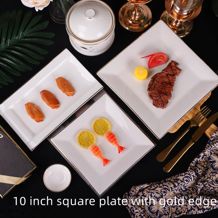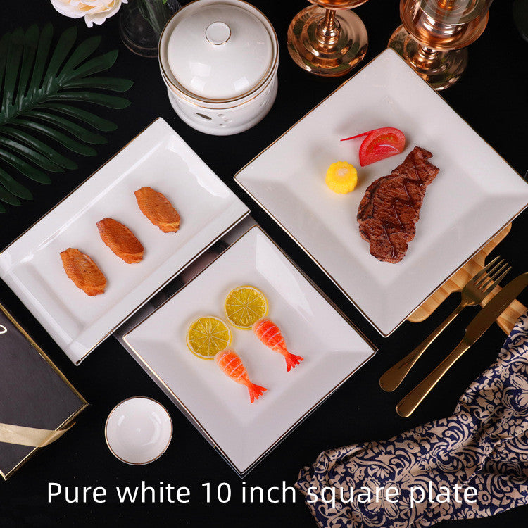 Specifications: 8-inch square plate with gold edge, 10-inch square plate with gold edge, pure white 8-inch square plate, pure white 10-inch square plate
