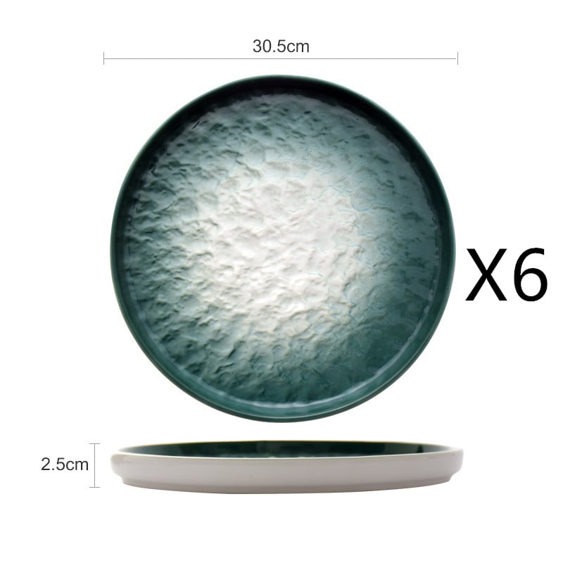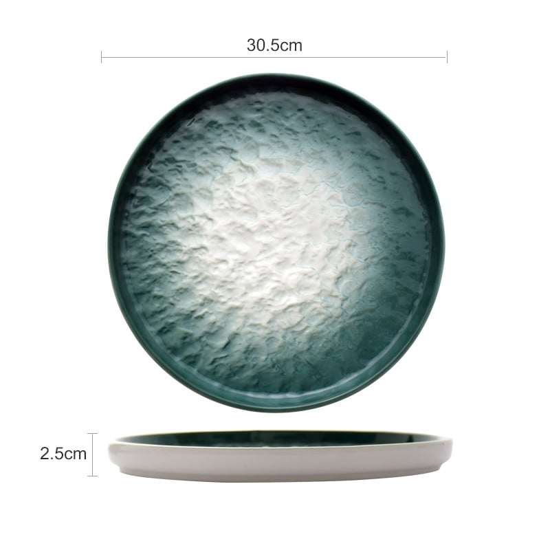 Gradient Emerald Steak Plate Stone Pattern Pasta Plate Western Plate Round Plate Restaurant Home