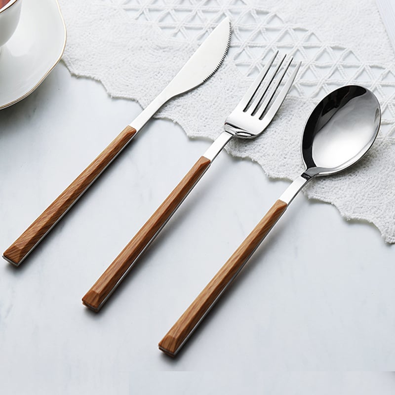 Nordic Household Steak Knife Fork Spoon Plate Stainless Steel Wooden Western Tableware Set